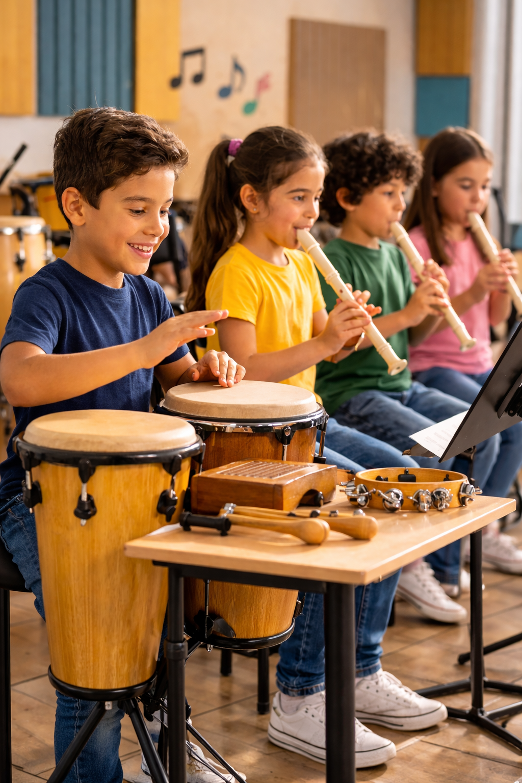 El ritmo organiza el cerebro. Incorporar percusión corporal, desplazamientos y dinámicas rítmicas mejora la atención, la coordinación y la autorregulación.